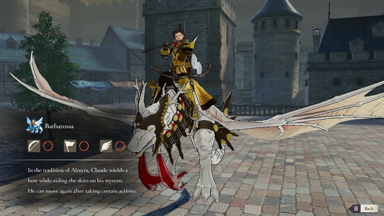 Wyvern Lord or Dark Knight. Claude rides what appears to be a white wyvern which sports Almyran armor and a red beard of tassels.